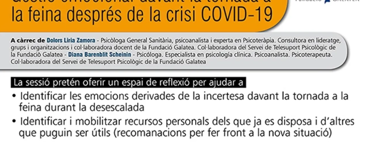 - Identificar les emocions derivades de la incertesa davant la tornada a la feina durant la desescalada