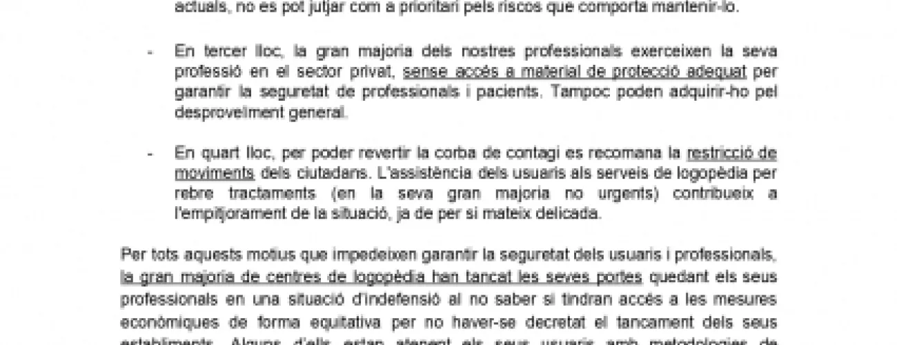 Sol·licitud de tancament dels centres de logopèdia al govern de la generalitat de catalunya