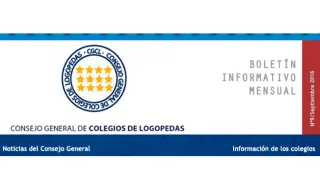 El Consejo General de Colegios de Logopedas edita un butlletí mensual amb les informacions més destacades de cada col·legi. Podeu consultar l'últim número del Boletín del CGCL a l'enllaç adjunt: http://colegiologopedas-cv.org/cgcl/22/index.html