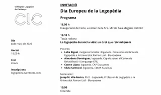 Taula rodona: La logopèdia durant la vida: un dret que reivindiquem. Enllaç: https://us02web.zoom.us/j/84770705801