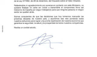 Adjuntem carta del Director del Gabinete de la Ministra de Hacienda a la Presidenta del Consejo General de Colegios de Logopedas Sra. Mireia Sala en relació al 21% IVA.