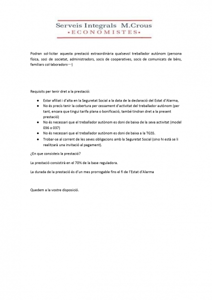 Comunicado actualizado en relación a las ayudas para los autónomos