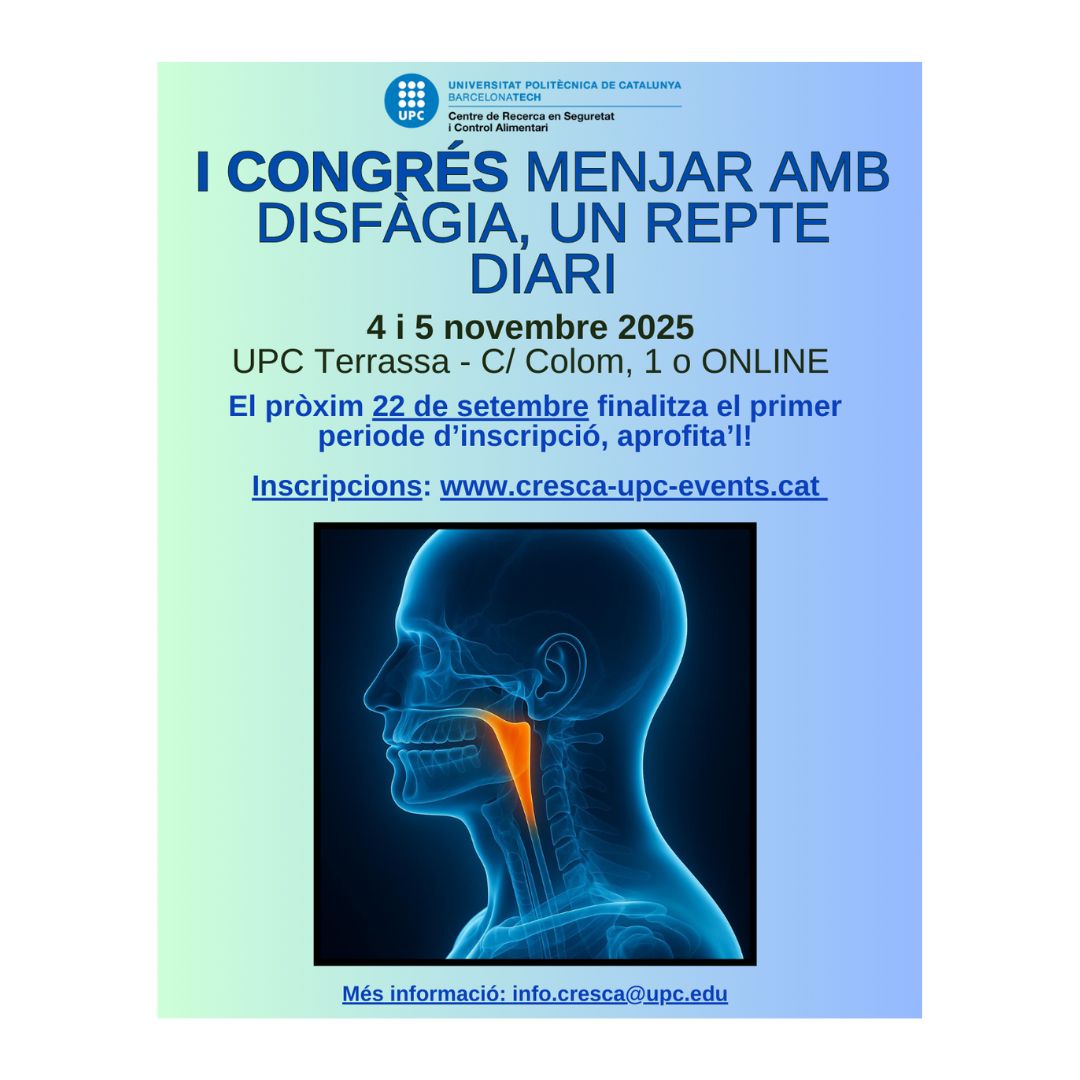 Els dies 4 i 5 de novembre de 2025, se celebrarà a Terrassa el primer congrés organitzat per logopedes dedicat exclusivament a la disfàgia orofaríngia en l’àmbit de parla espanyola, el I CONGRÉS MENJAR AMB DISFÀGIA, un repte diari. El Col·legi de Logopedes de Catalunya hi participarà activament, aportant-hi la seva mirada professional i reforçant la presència de la logopèdia en espais científics i multidisciplinaris.