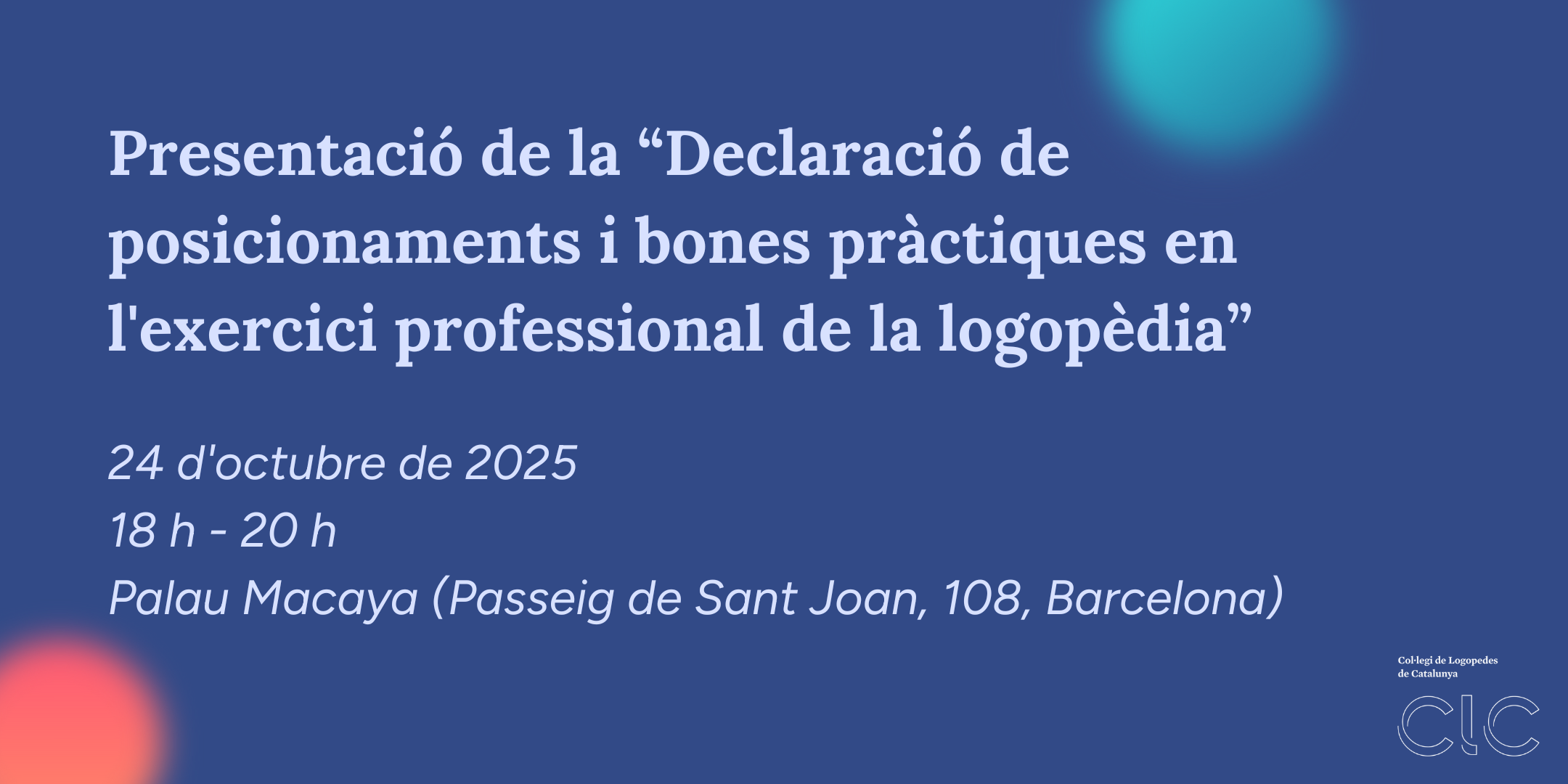 El Col·legi de Logopedes de Catalunya té el plaer de convidar-vos a l’acte de presentació de la Declaració de Posicionaments i Bones Pràctiques en Logopèdia, un document elaborat amb la participació activa de professionals del nostre col·lectiu.